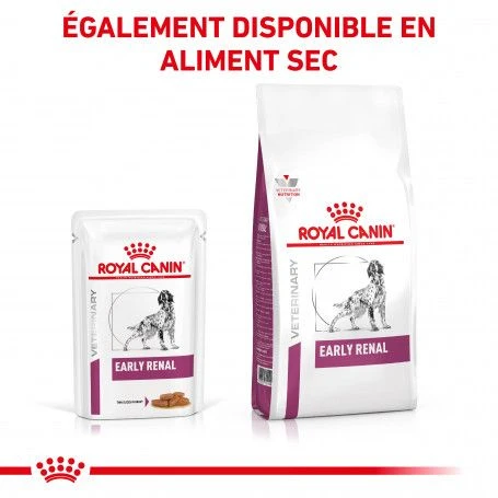 Le dog Early Renal en sachet repasu00a0est destinu00e9 u00e0 la prise en charge nutritionnelle des problu00e8mes ru00e9naux du chien. Veuillez consulter votre vu00e9tu00e9rinaire avant utilisation.