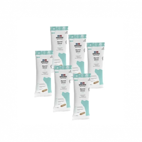 SPECIFIC Dental Chew Large est une savoureuse friandise u00e0 mu00e2cher destinu00e9e au soutien de la santu00e9 bucco-dentaire chez les chiens adultes pesant plus de 15kg. Cette friandise s’utilise en supplu00e9ment de l’alimentation habituelle de votre chien.