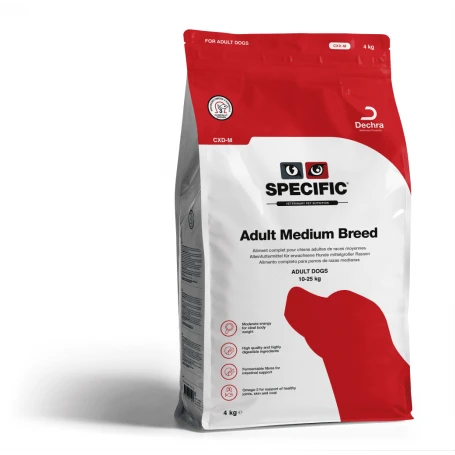 DECHRA France Specific CXD-M Adult Medium Breed est une alimentation quotidienne des chiens de races moyennes, de 1 u00e0u00a07 ans stu00e9rilisu00e9s ou non.