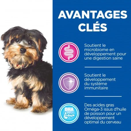 Comme chaque produit de la gamme Hillu2019s Vet Essentials, les croquettes Vet Essentials Puppy Growth ActivBiome+ Small & Mini Poulet apportent au moins 5 bu00e9nu00e9fices santu00e9 u00e0 votre compagnon: